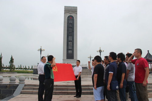 在紀念碑下,全體黨員面對鮮紅黨旗舉起右手高聲宣誓,重溫入黨誓詞,表達為黨的事業(yè)奮斗終身的決心。隨后,全體人員在革命烈士紀念碑前,全體肅立,向革命先烈默哀致敬,行三鞠躬禮,追思革命先烈的豐功偉績;顒幼詈髤⒂^了革命烈士紀念館,進一步了解革命先烈們艱苦卓越的斗爭歷史和大無畏的革命獻身精神。